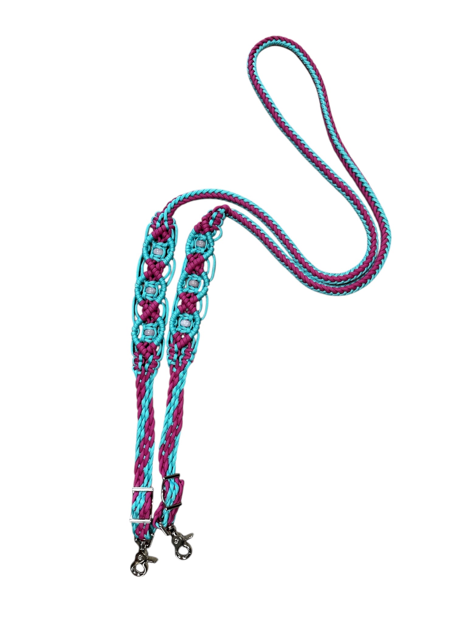 Fuchsia and turquoise  Beaded Browband Headstall with a fancy braided browband with matching reins....all sizes.